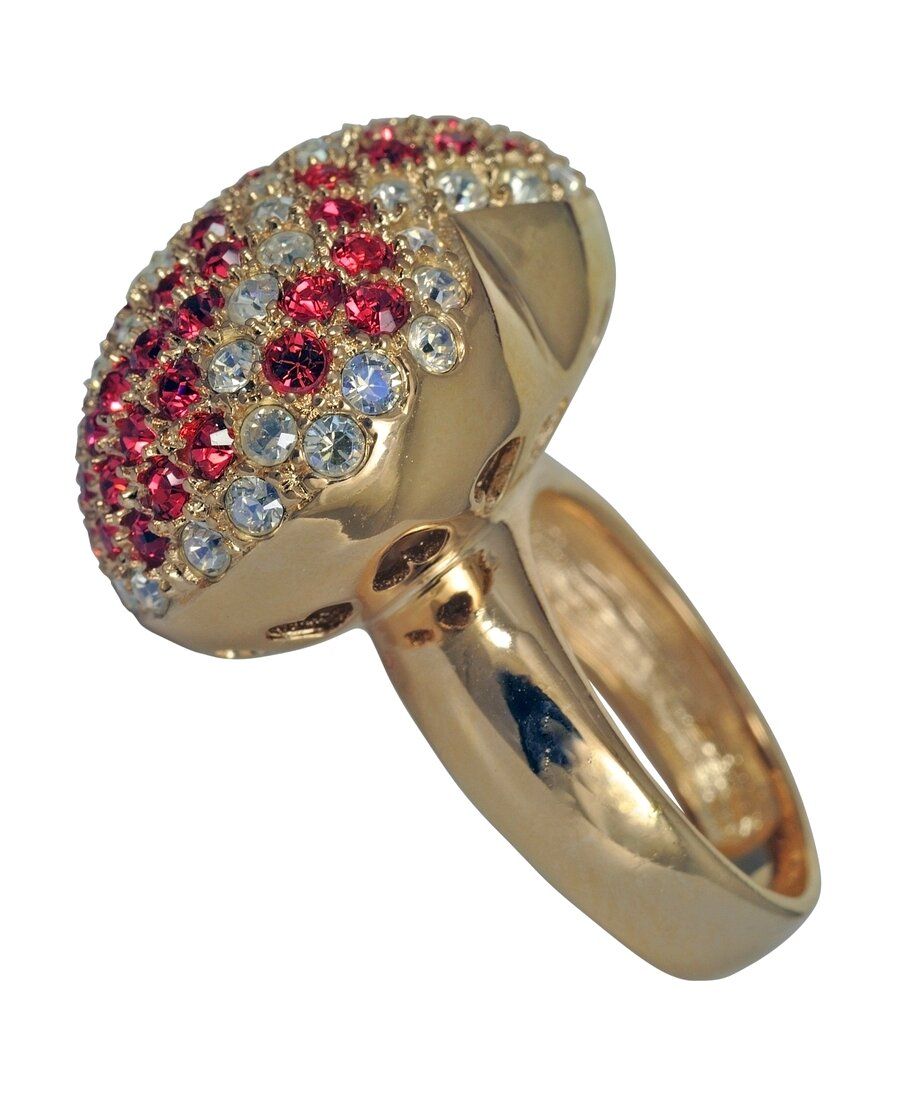 Anillo Corazón con cristales Swarovski en tonos rojos de plata bañada en oro amarillo. Los anillos se envían con los acabados representados en las fotografías pero te damos la opción de cambiar el tipo de baño de cada pieza y los colores de los cristales de Swarovski.