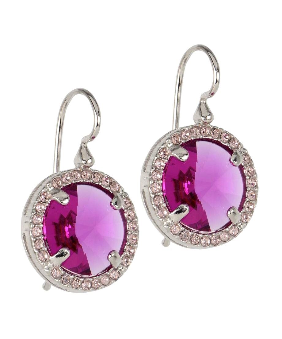 Estos pendientes con cristal violeta de forma redonda tienen cierres de gancho y están fabricados en plata rodinada.